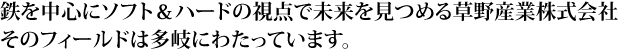 今後は一層、各部門の活性化を図るとともに、技術革新、市場ニーズや経済情勢の変化に即応できる態勢を整え、「価値ある専門商社」となるべく、草野グループの事業を推進してまいります。